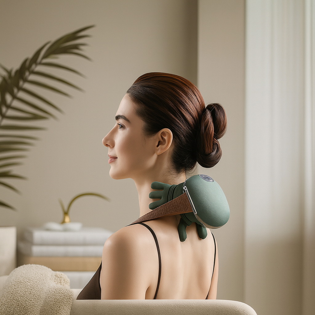 Soothio melts away tension with gentle heat and smooth, fingertip-like shiatsu kneading that feels natural, comforting, and deeply relaxing.